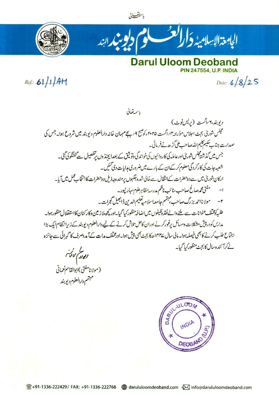 مجلس شوری ومجلس عاملہ مجلس شوریٰ کا اجلاس Related Posts مجلس شوری ومجلس عاملہ دارالعلوم دیوبند کی مجلس شوریٰ کا اجلاس اختتام پذیر مجلس شوری ومجلس عاملہ دارالعلوم دیوبند کی مجلس عاملہ کا اجلاس ذوالقعدہ ۱۴۴۲ھ مطابق جون 2021