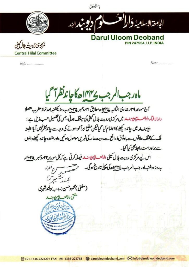 رویت ہلال ماہ رجب 1447ھ کا چاند نظر آیا Related Posts رویت ہلال رمضان المبارک 1447ھ کا چاند نظر آیا رویت ہلال ماہ شعبان 1447ھ کا چاند نظر نہیں آیا